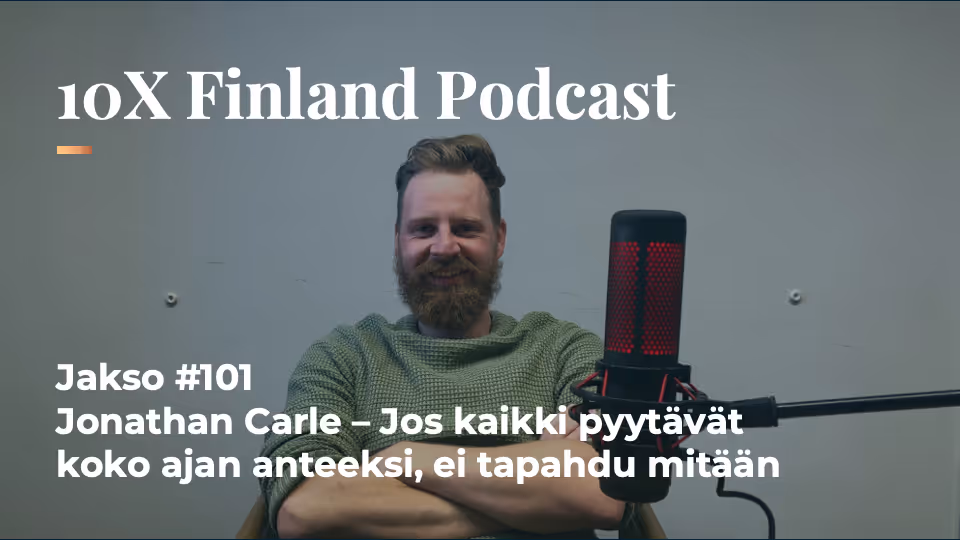 Tämä on sadas 10X Finlandin jakso. Juhlan kunniaksi käänsin pöydät ympäri eli tällä kertaa haastateltavana on podcastin isäntä eli minä Jaakko Tapaninen. Keskustelua vetää Marko Ahtisaari, jonka kanssa julkaisimme kymmenen vuotta sitten kirjan 10X Finland, joka innoitti aloittamaan tämän samannimisen ohjelman.